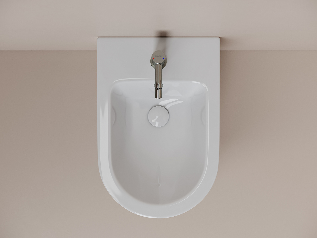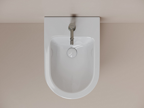 Подвесное биде со сливом - переливом. Донный клапан приобретается отдельно.