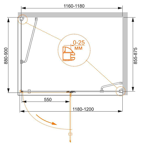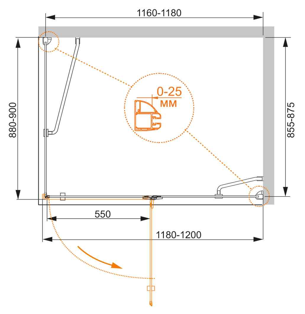 Душевой уголок, прямоугольный. Тип дверей: одна распашная дверь. Стекло: 6 мм. Исполнение: хром. Поддон: Тип АH или барьер Тип B. Поддон и барьер приобретаются отдельно. Особенности: * улучшенная герметичность за счёт петли с функцией подъема двери, * скрытые крепежные элементы петель, * увеличенная Высота, * хромированный магнитный уплотнитель дверей.