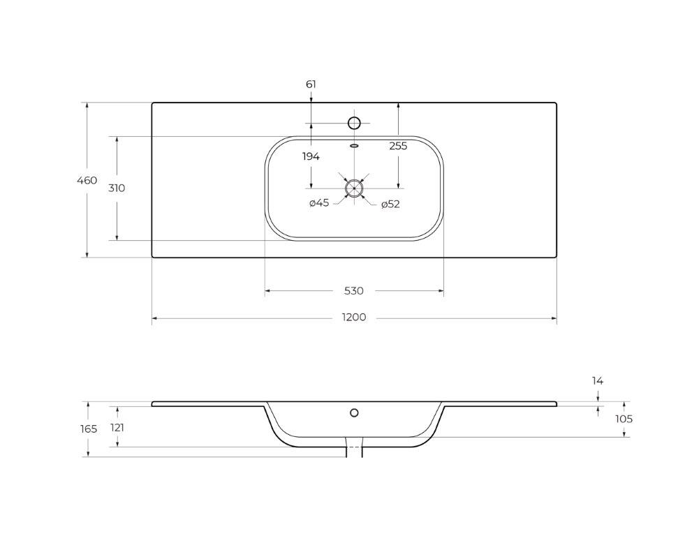 Раковина керамическая 120 см, CZR-NAT-120-LVB