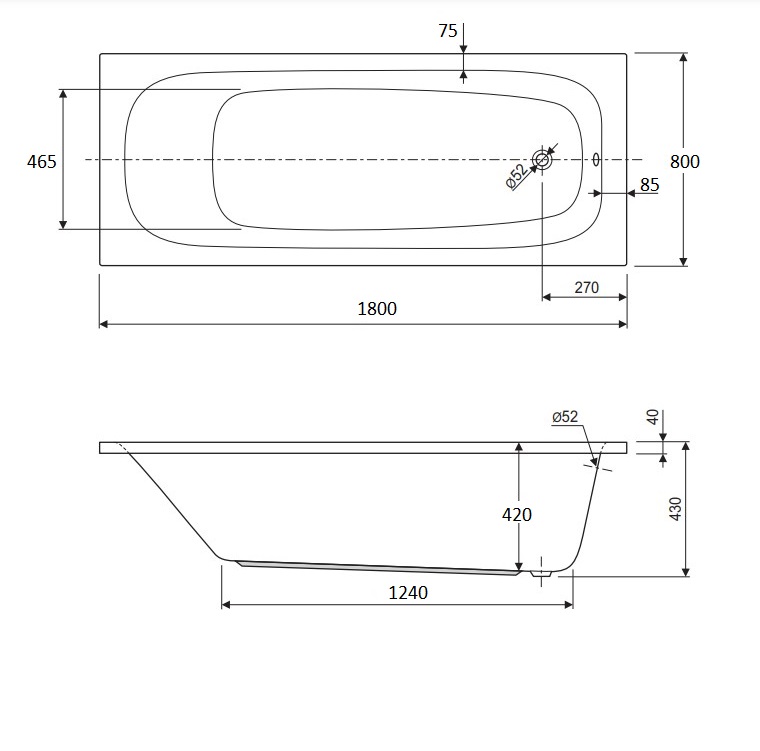Cezares ECO-180-80-41-W37 Eco Ванна акриловая, белый
