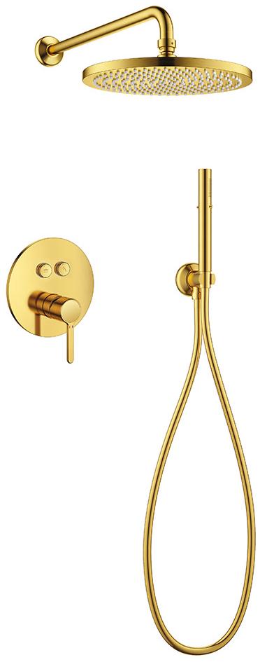 ECO-DSET-BORO Душевой набор (встраиваемый смеситель с кнопочным управлением, верхний душ диаметр 25 см, ручной душ со шлангом, штуцером и держателем), брашированное золото