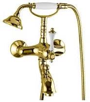 Cezares MARGOT-VDM-03/24-Bi Смеситель для ванны, с ручным душем, золото 24 карат/ручки белые
