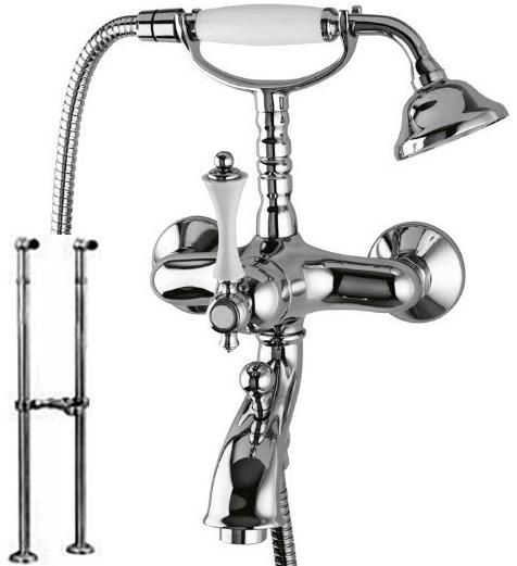 Cezares MARGOT-VDPS-01-Bi Смеситель для ванны, с ручным душем, напольный, хром/ручки белые