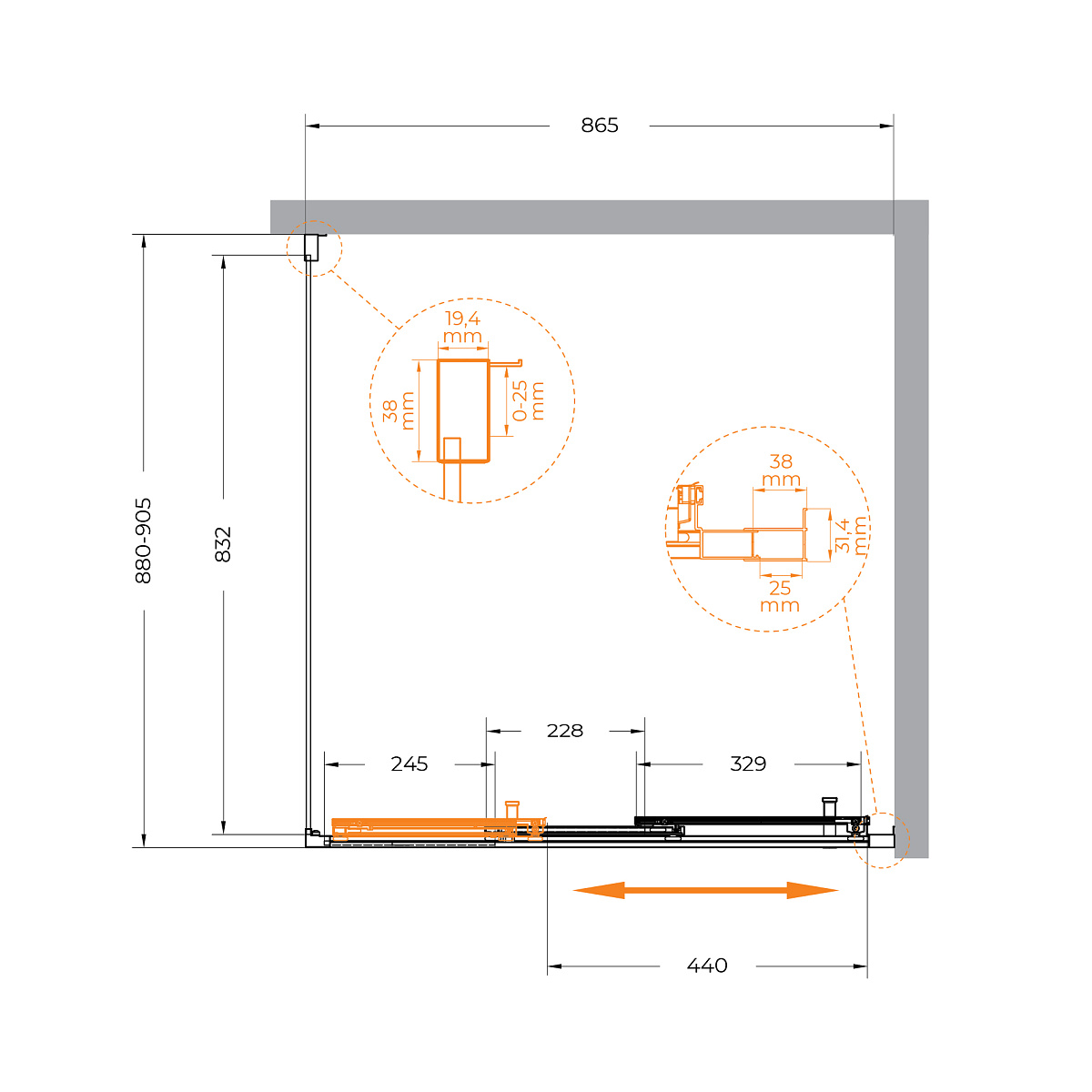 Ширина изделий до 180 см с уникальной возможностью создания еще больших размеров за счет дополнительных неподвижных элементов шириной 20 и 30 см.