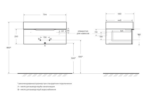 Тип товара База под раковину подвесная
