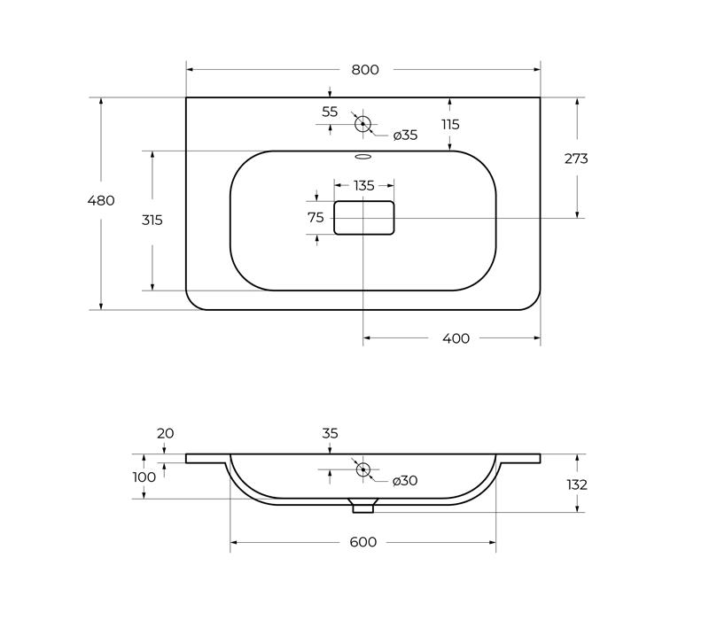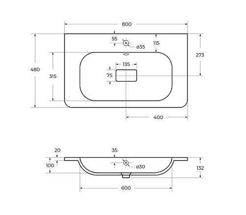 Cezares Relax CZR-800/480-LV-MR-NV Раковина