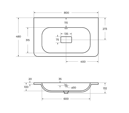 Cezares Relax CZR-800/480-LV-MR-NV-W0 Раковина