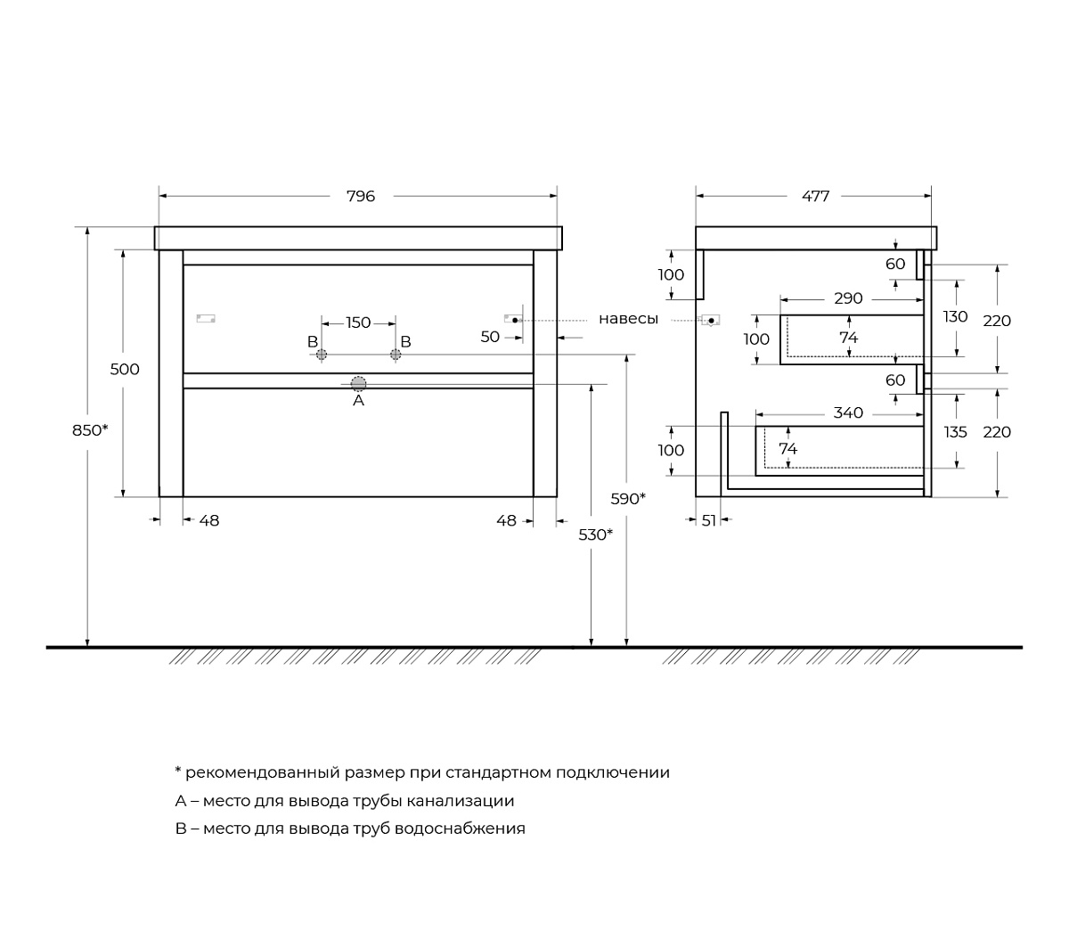 Тип товара База под раковину подвесная