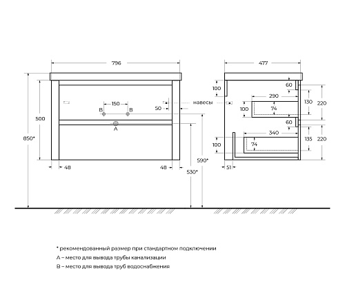 Cezares Relax RELAX-800-2C-SO-BORO-P Тумба под раковину подвесная