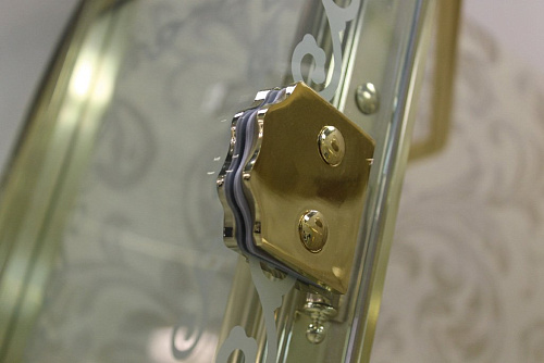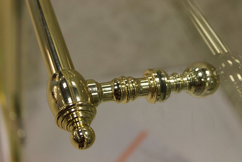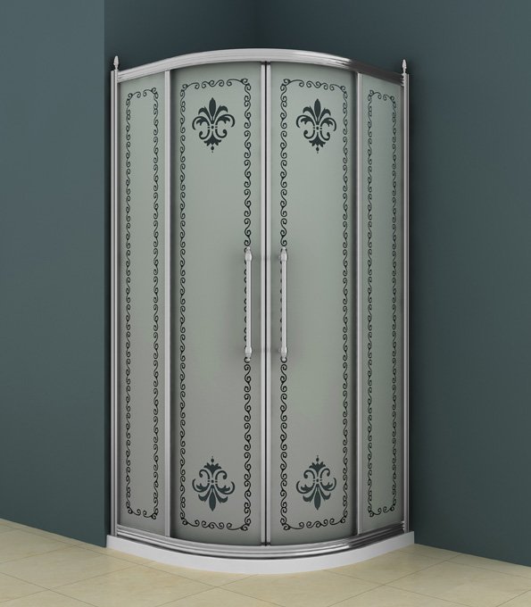 Душевой уголок радиальный, R-550. Тип дверей: две раздвижные. Стекло: 8 мм, СP прозрачное c матовым узором или PP матовое с прозрачным узором , Исполнение: глянцевый хром, бронза или золото. Поддон: R радиус 550 . Поддон приобретается отдельно. Особенности: * стиль Викторинаской эпохи XIX века, * гарантийная безотказная работа в течение 15 лет или 35 000 циклов открывания.