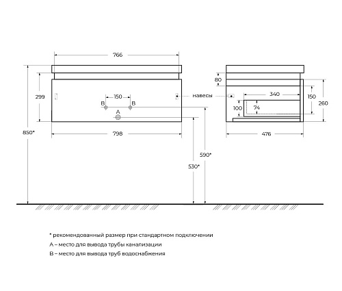Тип товара База под раковину подвесная