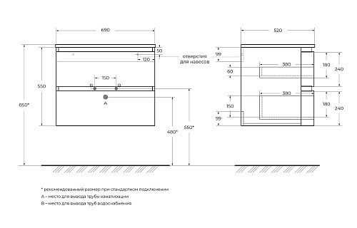 Cezares VAGUE 54847 Тумба под раковину подвесная