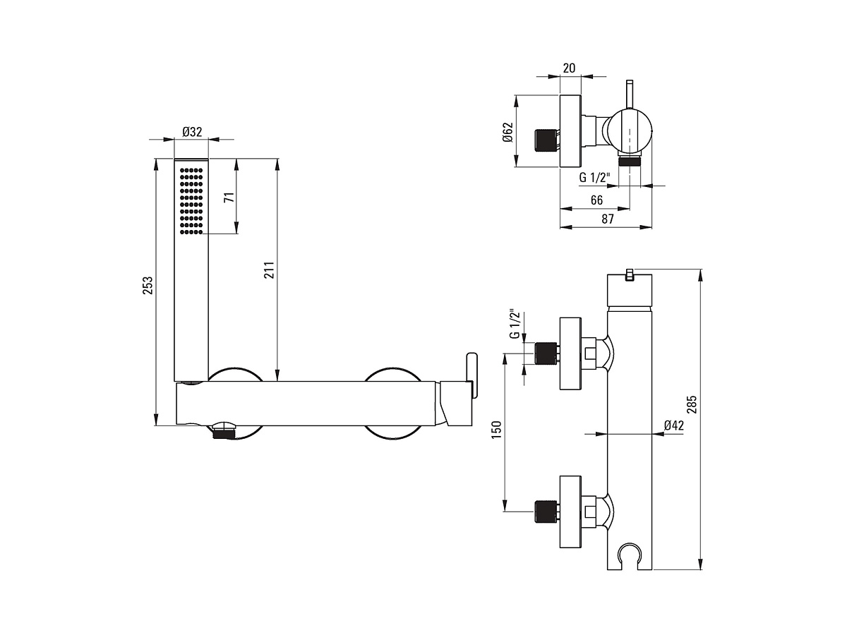 Deante BQS_N41M Silia Смеситель для душа с душевым гарнитуром, Nero (черный)