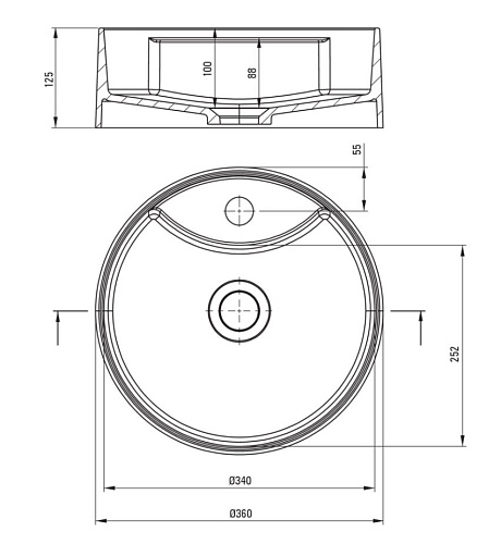 Deante CQS_TU4B Silia Раковина накладная D36 см, с отверстием под смеситель, антрацит металлик