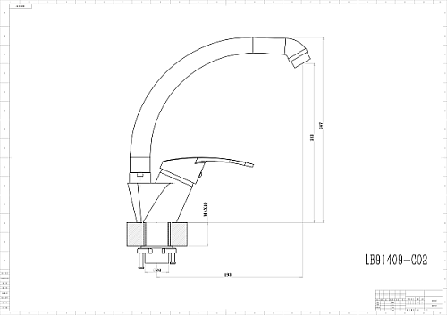 Смеситель однорычажныи? с низким изливом;Материал - корпуса латунь , материал излива нерж. сталь ;Поворотныи? излив;Керамическии? картридж 40мм;Гибкая подводка 50 см