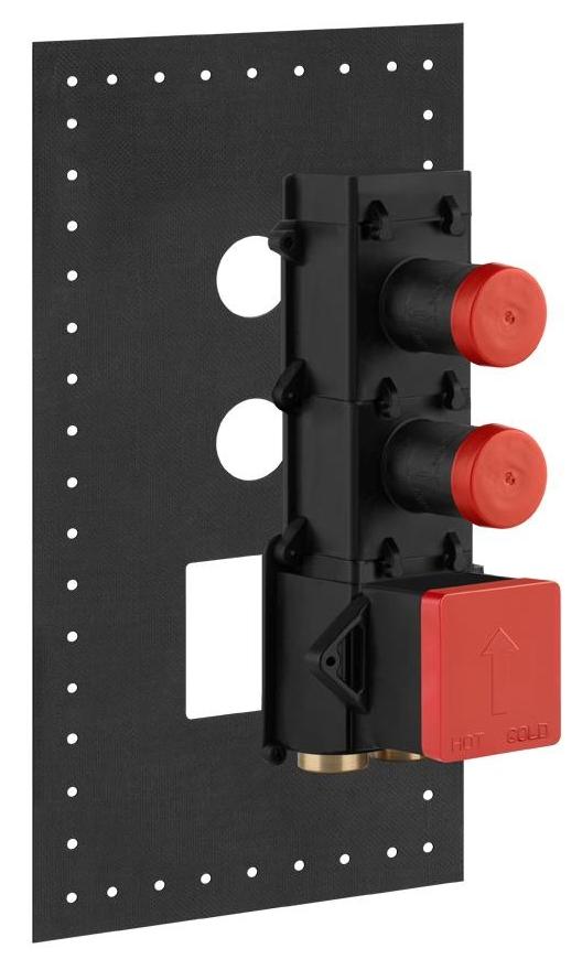 Термостатический смеситель скрытого монтажа. Встраиваемые части для термостатического смесителя с высокой пропускной способностью, подключение на 3/4”, с вертикальной / горизонтальной установкой с двумя независимыми выходами.