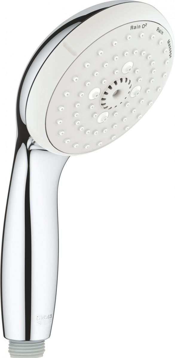 GROHE Rain O2, Rain, Massage GROHE DreamSpray превосходный поток воды GROHE StarLight хромированная поверхность с системой SpeedClean против известковых отложений Внутренний охлаждающий канал для продолжительного срока службы ShockProof силиконовое кольцо, предотвращающее повреждение поверхности при падении ручного душа универсальное крепление, подходящее к любому стандартному шлангу может использоваться с проточным водонагревателем минимальное давление 1,0 бар