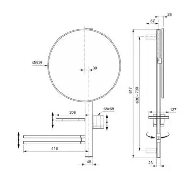 ALU+ Beauty Bar L Комплект аксессуаров, состоящий из: штанги 800 мм с направляющими справа и слева для установки аксессуаров по выбору при первичном монтаже; фиксированного зеркала 500 мм; большой полочки 208 мм (макс. нагрузка 7кг); стаканчика; полотенцедержателя, угол поворота 90°