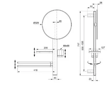 ALU+ Beauty Bar M Комплект аксессуаров, состоящий из: штанги 700 мм с направляющими справа и слева для установки аксессуаров по выбору при первичном монтаже; фиксированного зеркала 320 мм; большой полочки 208 мм (макс. нагрузка 7кг); стаканчика; полотенцедержателя, угол поворота 90°