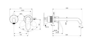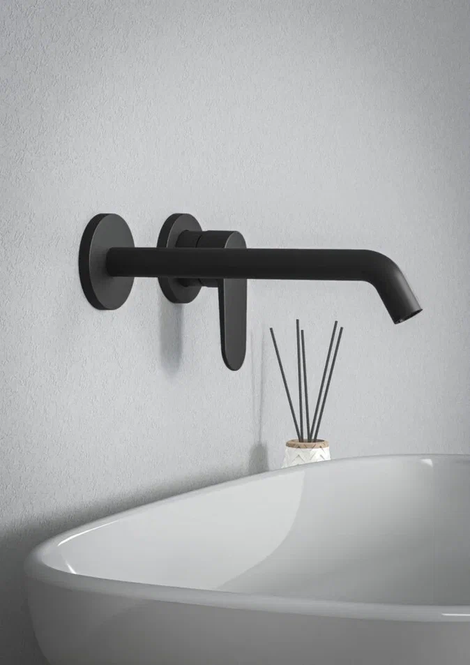 CERAFINE O NUOVO Настенный смеситель для раковины, для монтажа со встраиваемым комплектом A1313NU (заказывается дополнительно), трубчатый излив 220 мм, аэратор 3,8 л/мин, картридж 28 мм FirmaFlow с функцией HWTC, металлическая рукоятка с индикаторами горячей / холодной воды