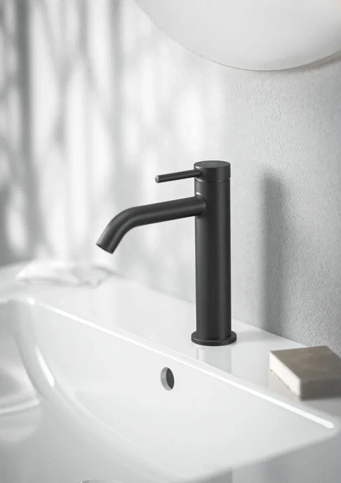 CERALINE NUOVO Смеситель для раковины H120, керамический картридж FirmaFlow 28 мм с функцией HWTC (ограничение максимальной температуры горячей воды), металлическая рукоятка с индикаторами горячей / холодной воды, аэратор 3,8 л/мин, система монтажа EASY-FIX (облегченный монтаж), гибкая подводка G3/8", технология Blue Start. Упаковка без пластика.