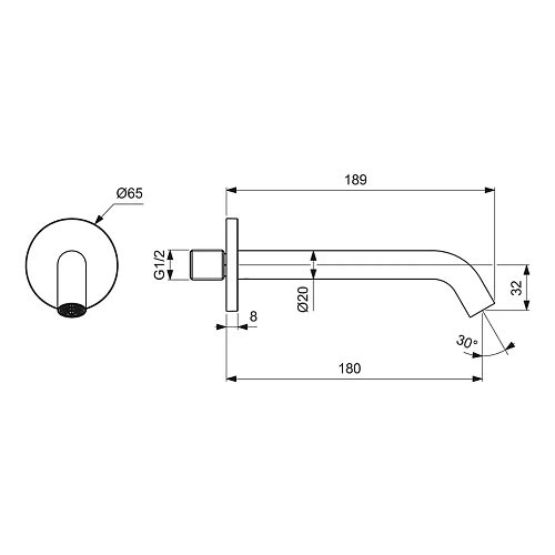 Настенный излив для ванны 180 мм, подключение 1/2", металлическая розетка ?65 мм