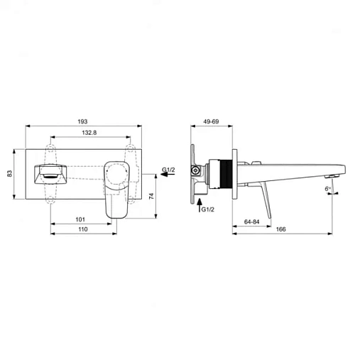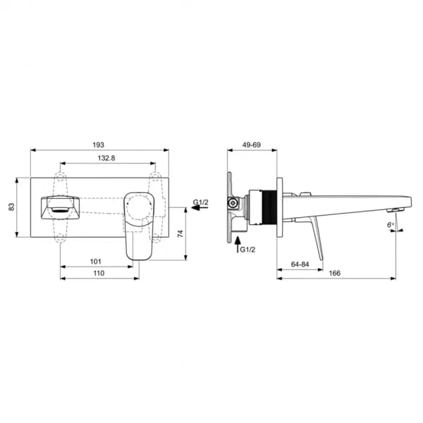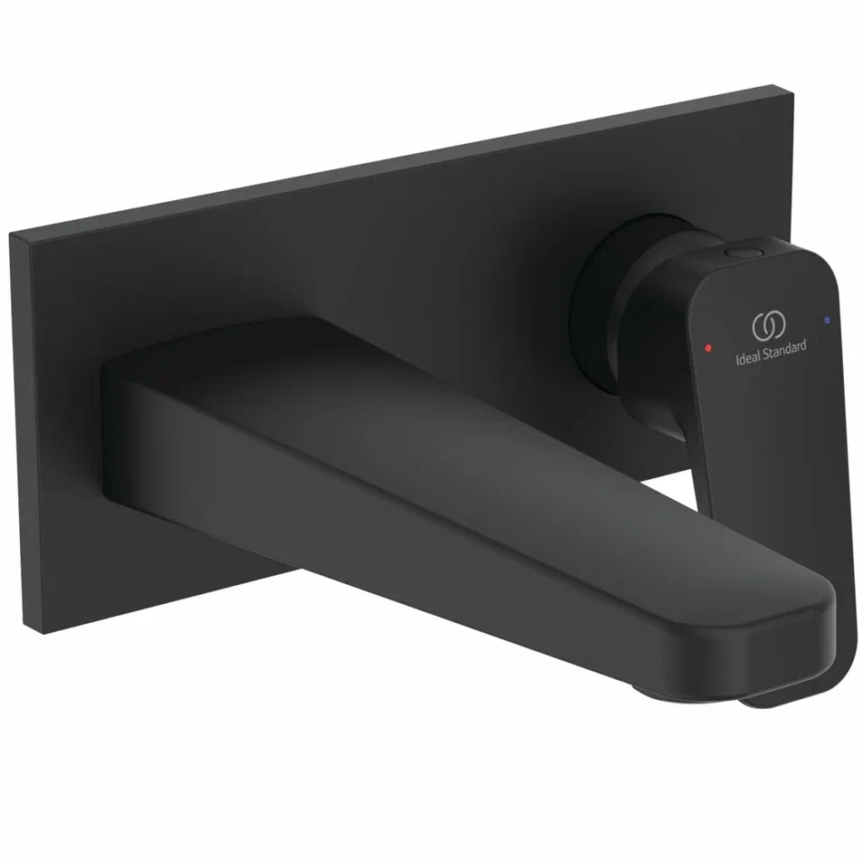 CERAPLAN Настенный смеситель для раковины, для монтажа со встраиваемым комплектом A1313NU (заказывается дополнительно), литой излив 180 мм, металлическая накладка, аэратор с ограничением потока 3,8 л/мин, картридж FirmaFlow 28 мм с функцией HWTC (ограничение максимальной температуры горячей воды), металлическая рукоятка с индикаторами горячей / холодной воды