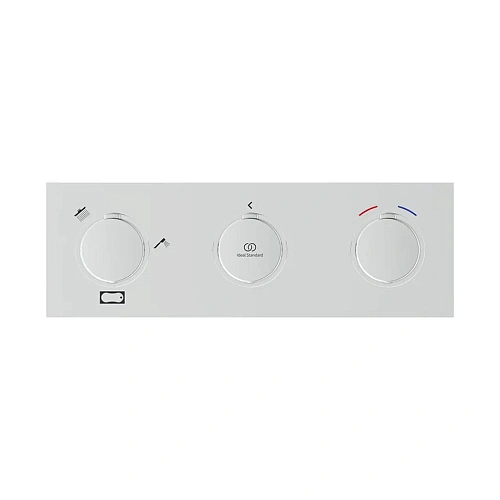 CERATHERM C100 Встраиваемый термостатический смеситель для ванны/душа на 3 выхода (верхний душ, ручной душ, излив для ванны), полный комплект (внешняя + встраиваемая части). Прямоугольная металлическая накладка с пиктограммами, металлические рукоятки. Обратные клапаны на входах. Термостатический картридж PreciTherm®, ограничение максимальной температуры горячей воды. Рукоятка с ограничителем температуры воды (40?C). Поворот рукоятки переключателя - 240° (не следует принудительно выходить за пределы этого диапазона). Горизонтальное или вертикальное размещение на стене. При горизонтальном монтаже переключатель должен быть слева, при вертикальном монтаже переключатель должен быть вверху.