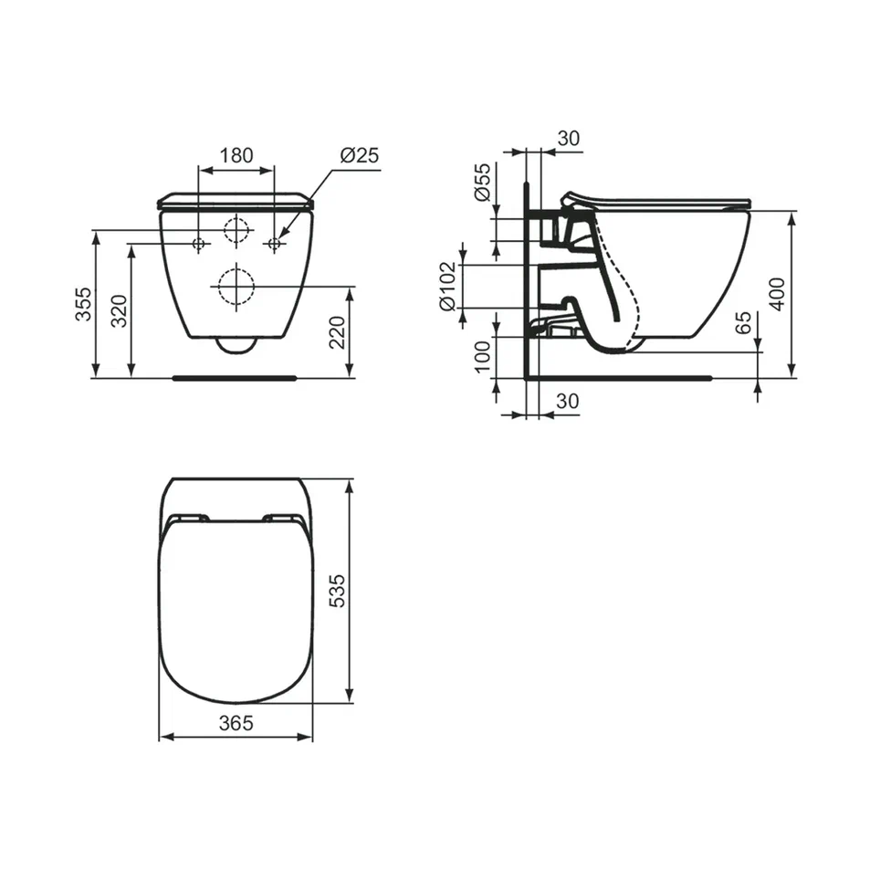 IDEALMOOD AquaBlade® Подвесной унитаз, глубокий смыв, с крепежом TT0299598 (для полностью скрытого монтажа), с сиденьем и крышкой с микролифтом T3527