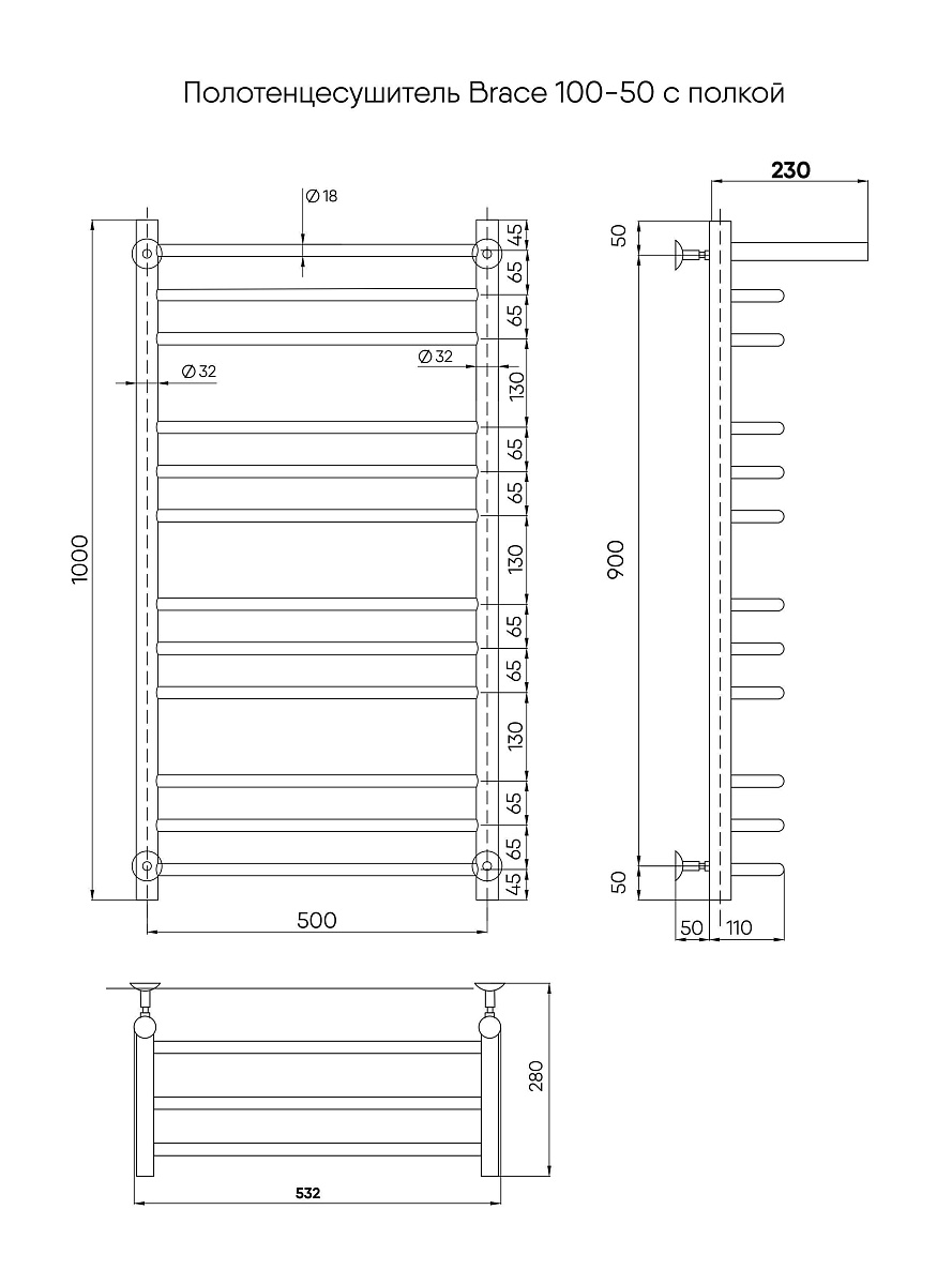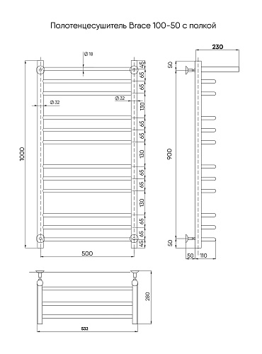 Indigo Brace LBCW100-50GDPK3 Полотенцесушитель водяной