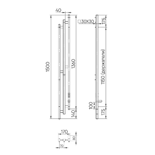 Оснащение Полотенцесушитель, гарантийный талон, 4 держателя квадратных, комплект для монтажа - 1 шт.