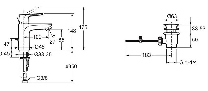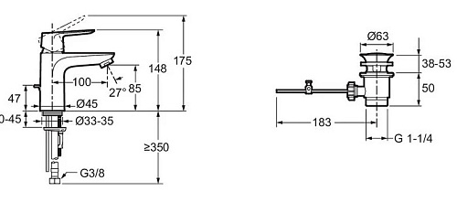 Jacob Delafon JULY+ E35662-4-BL Смеситель для умывальника