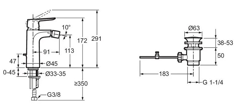Jacob Delafon JULY+ E35668-4-BL Смеситель для биде