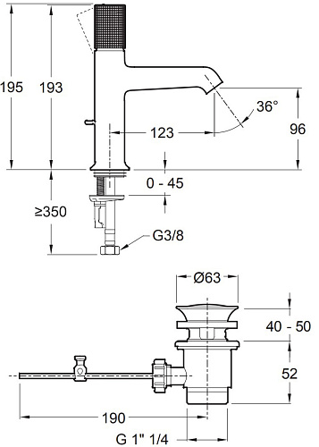 Оснащение Аэратор, гибкая подводка, донный клапан