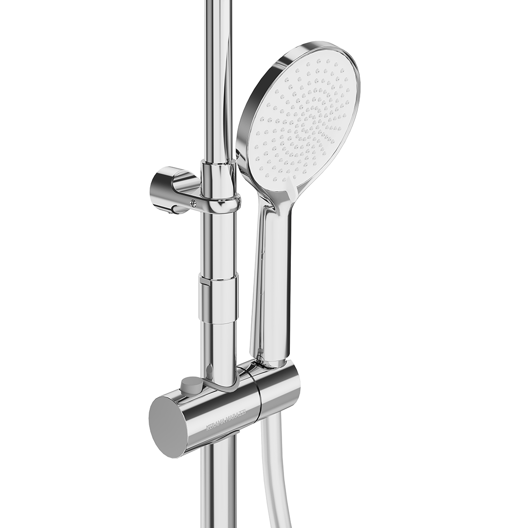Душевая колонна FONTE без смесителя — универсальное изделие, которое сочетается с любым смесителем KERAMA MARAZZI для ванны и душа. Благодаря возможности регулировки по высоте монтажа, такая колонна может быть установлена как в душевой зоне, так и в ванной.