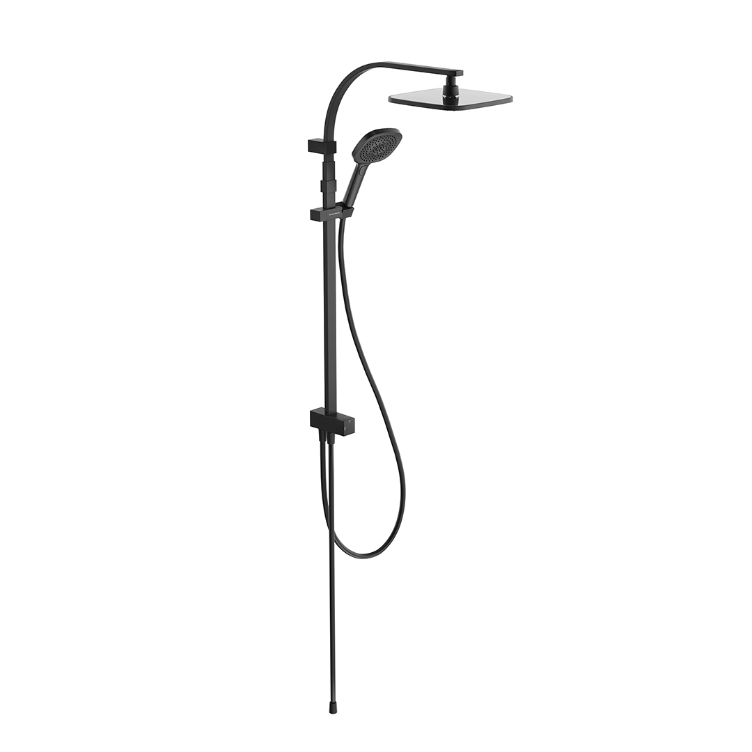 Верхний душ и ручная лейка имеют форму квадрата со скруглёнными углами. Стойка выполнена из нержавеющей стали, прямоугольная в сечении. У ручной лейки предусмотрены три режима потока. Регулировка высоты при установке — 930-1223 мм.