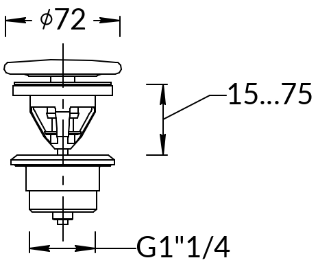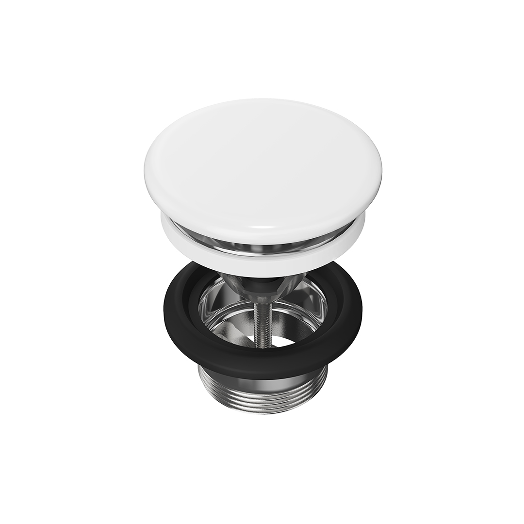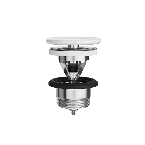 Донный клапан «клик-клак» предназначен для мебельных раковин с переливным отверстием, а также раковины PLR.wbu.55, встраиваемой снизу. Клапан оснащен запорным механизмом. Его закрытие и открытие производятся нажатием на крышку.