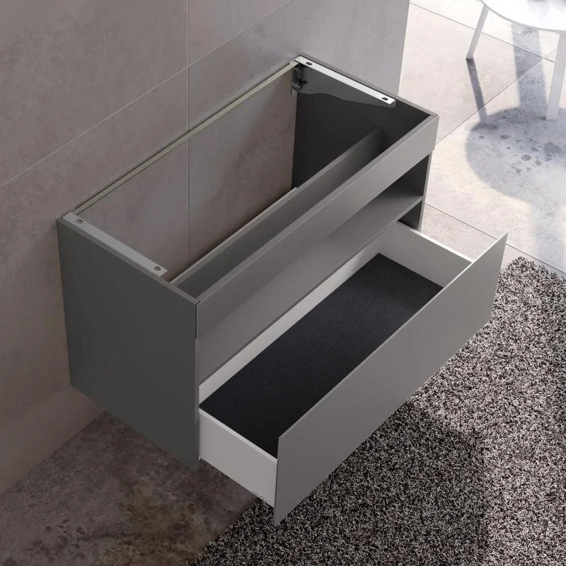Оснащение Антискользящий коврик, выдвижной фронтальный ящик с доводчиком, пластиковый сифон 1.1/4x32.