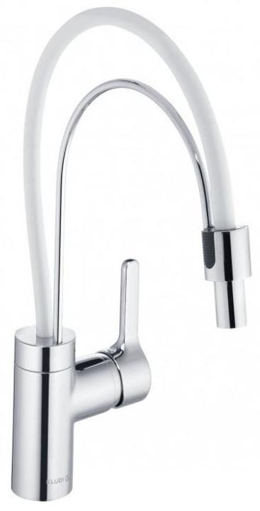 Kludi 428590578 Bingo Star Смеситель для кухни, выдвижной излив, белый/хром