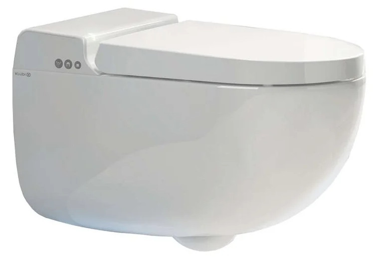 KLUDI-CLEANTRONIC умный унитаз - комплект подвесной, безободковый спиральный турбосмыв Spiral-Flush антибактериальное покрытие KLUDI-ProTek горизонтальный выпуск смыв 6/3 л 5 режимов регулировки форсунки автоматическая очистка форсунки водой до и после использования маятниковый режим струи (вперед-назад) регулировка температуры воды (33°C, 36°C, 39°C) гибридная система подогрева воды проточный бойлер теплой воды функция сушки 5 уровней температуры воздуха 2 уровня интенсивности воздушного потока датчик присутствия ночная подсветка, 5 цветов скрытые крепления Fischer функция быстрого снятия и установки сиденья quick release механизм плавного опускания крышки soft close