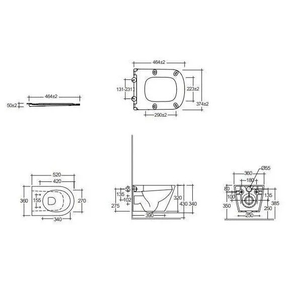 KLUDI-RESA R подвесной керамический унитаз с сиденьем длина 52 см безободковый спиральный турбосмыв Spiral-Flush приспособлен для смыва 6/3 л горизонтальный выпуск скрытые крепления Fischer сиденье в версии slim из дюропласта окрашено в массе механизм плавного опускания крышки soft close функция быстрого снятия и установки сиденья quick release для инсталляции KLUDI-UNIFIX 79300 или 79101