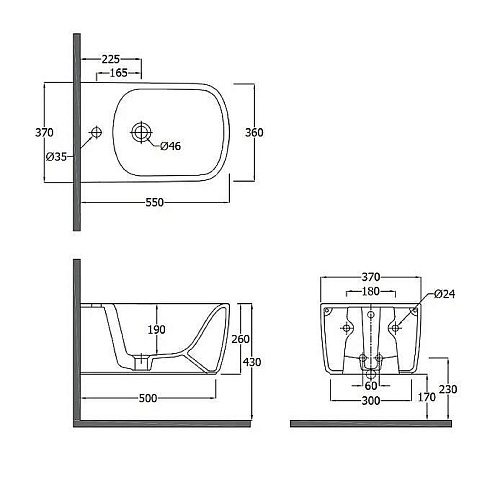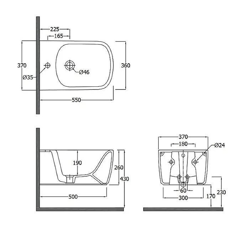 KLUDI-RESA S подвесное керамическое биде длина 55 см скрытые крепления Fisher без смесителя для биде без сливного гарнитура