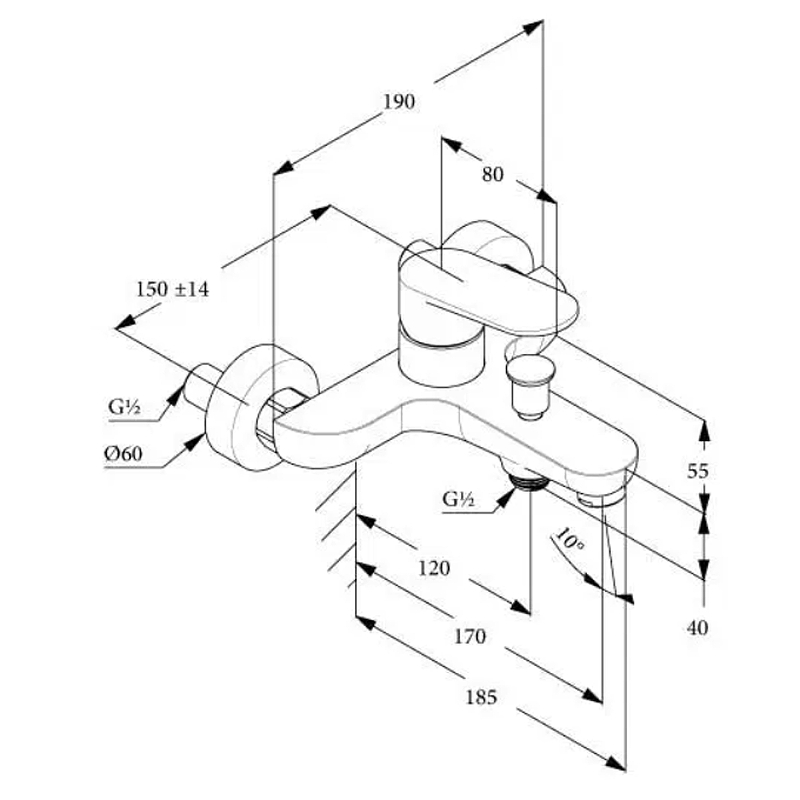 Kludi X1 326910575 Смеситель для ванны/душа однорычажный