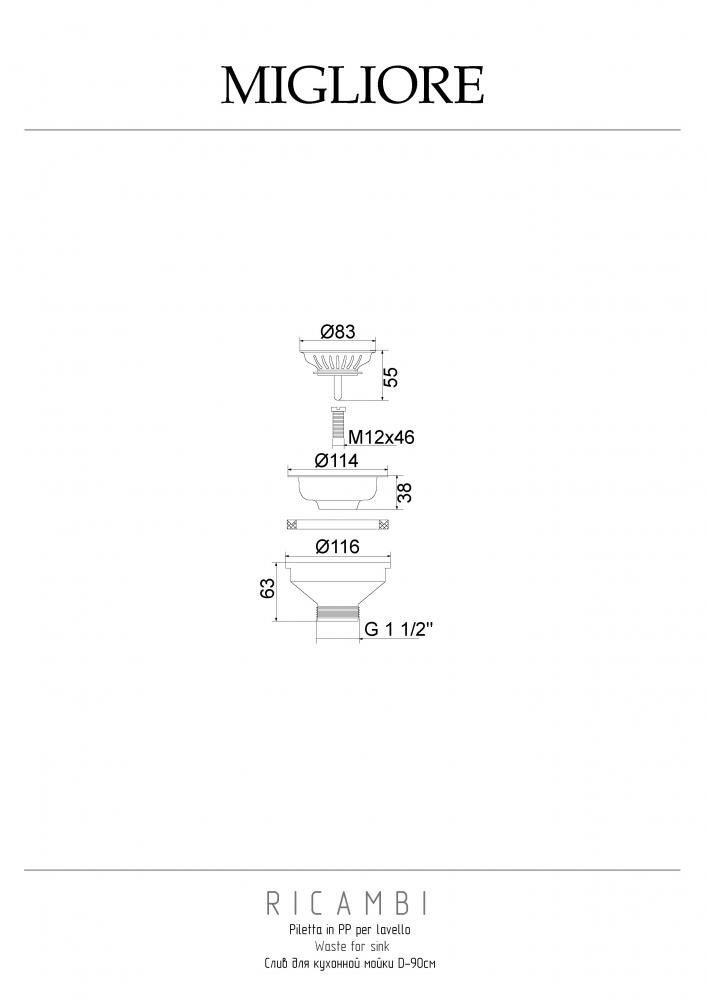 Migliore 22081 Слив для кухонной мойки D90, золото