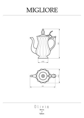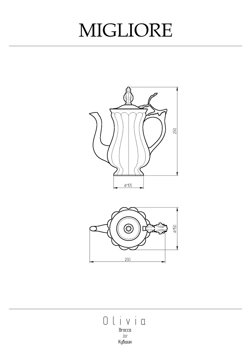 Кувшин коллекции Olivia бренда Migliore можно использовать для воды, при омовении или просто для украшения интерьера. Изделие выполнено из латуни и имеет высококачественное хромо-никелевое покрытие, которое при правильном уходе надолго сохранит свой блеск. Рекомендуется использовать чистящее средство бренда Migliore для смесителей и аксессуаров с хромированным покрытием.