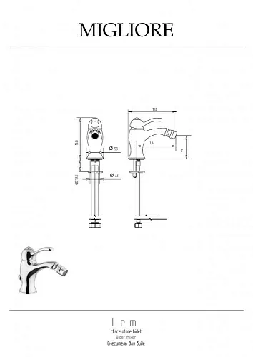Migliore 25872 Lem Смеситель для биде монокомандный, хром