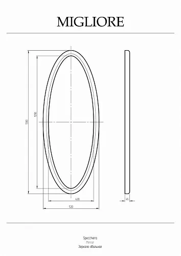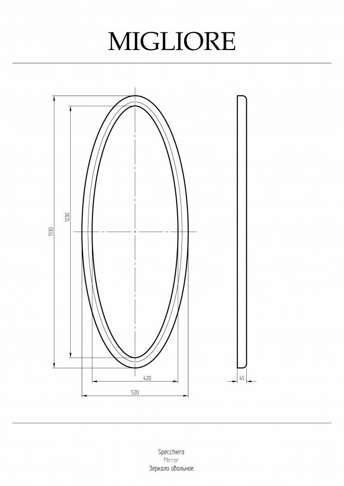 Migliore 30645 Зеркало овальное 133х52х4.5 см, серебро