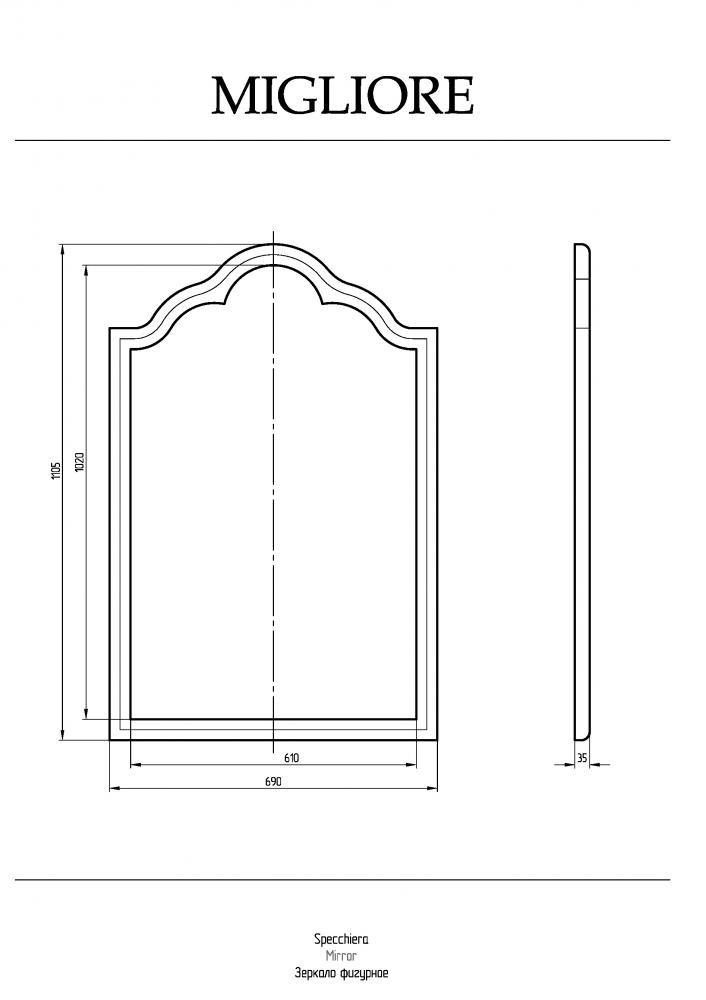 Migliore 30965 Зеркало фигурное 110х69х3.5 см, серебро