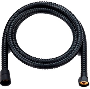 Оплетка из нержавеющей стали, внутр. канал из EPDM-каучука, латунные соединения, защита от скручивания, черный матовый.