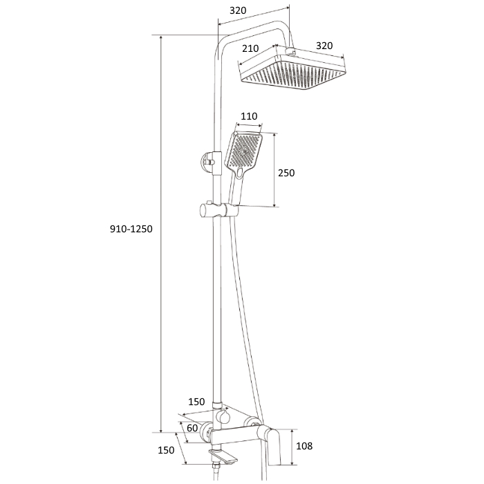 Оснащение Стойка 1 шт., крепеж к стене 1 шт, лейка для душа 2 шт, смеситель 1 шт, шланг для душа 1 шт., фиксатор лейки для душа 1 шт., паспорт изделия 1 шт.